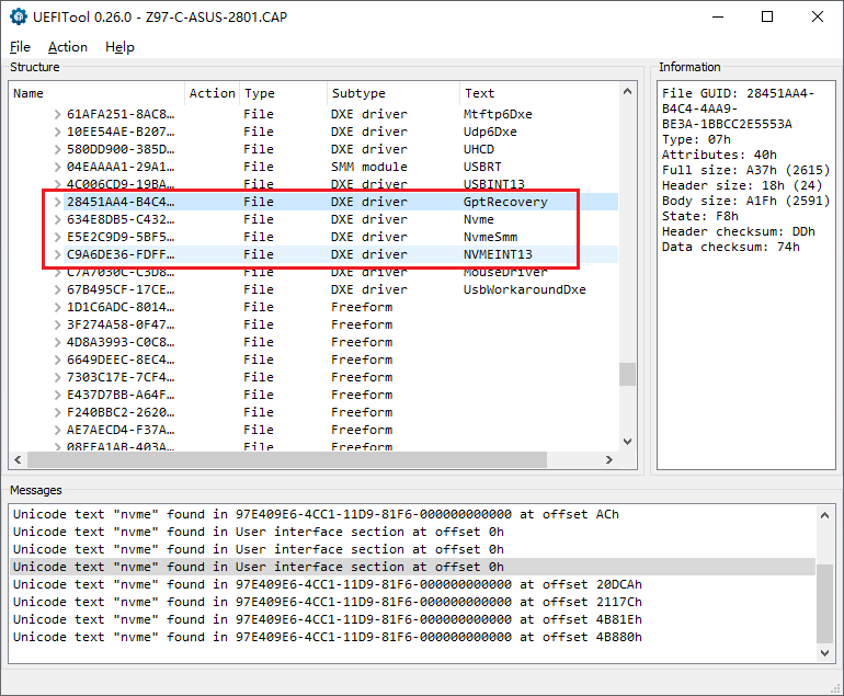 通过对比 Z97M 和 Z97-C 的 BIOS,发现 Z97M 缺少了四个跟 NVMe 相关的模块。